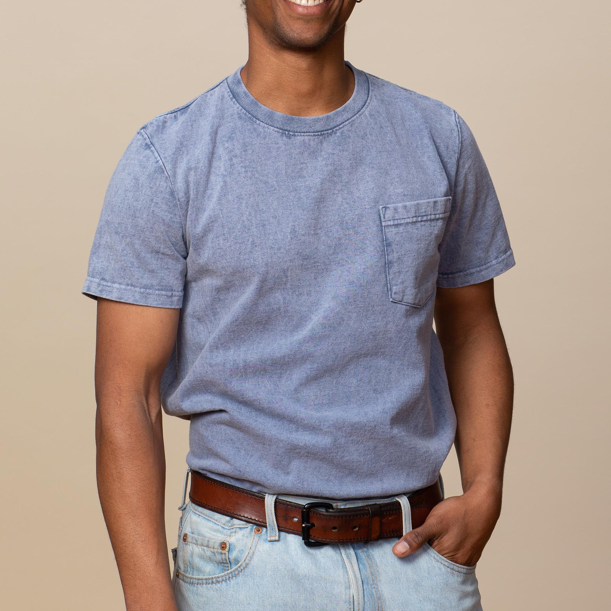 The yarn itself is dyed prior to knitting the fabric. The finished piece is a rich color, and the shirt will shrink to size after the first wash. The color is rich, but over time will fade and and wear in like a good pair of denim. This also applies to plain white shirts.